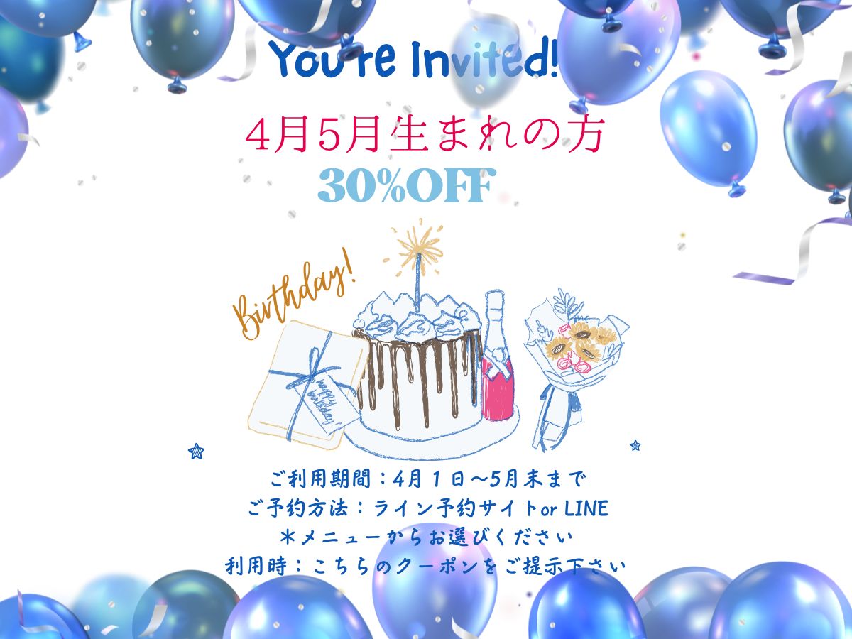 ※ご来店時にバースディ特典ご利用の旨をお伝えください